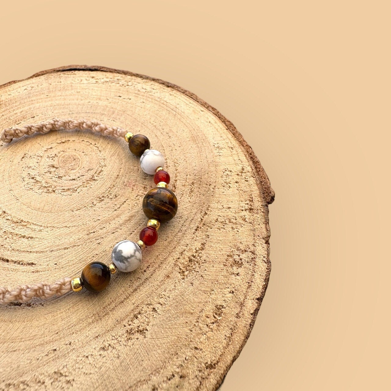 Bracciale Occhio di Tigre, Howlite e Corniola
