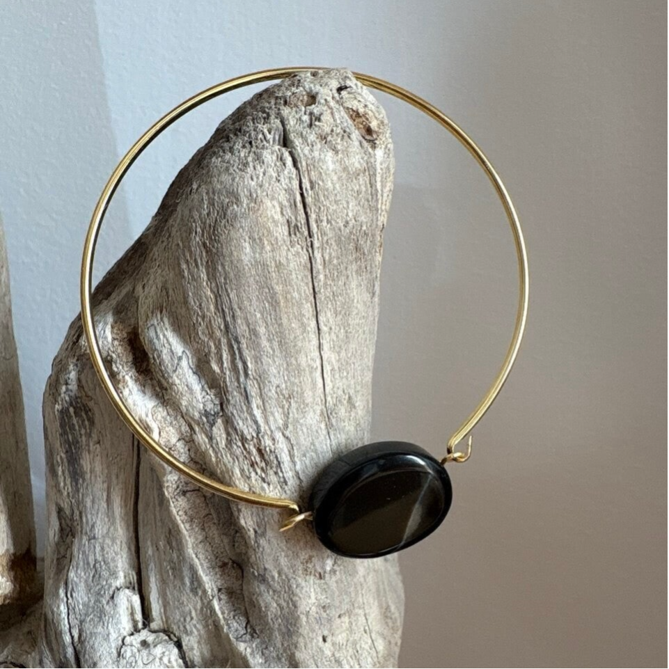 Bracciale rigido in tono oro con Onice Nera naturale.